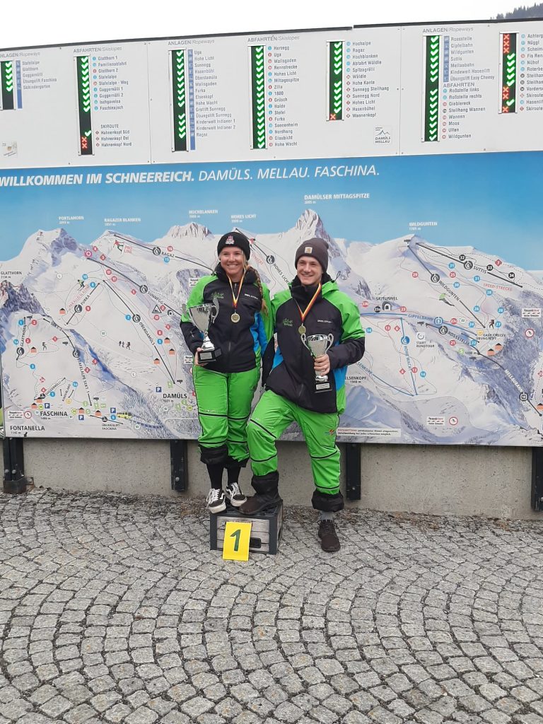 Bereits zum zweiten Mal konnten die jährlichen Vereinsmeisterschaften im Skigebiet Mellau-Damüls durchgeführt werden. Mit 35 Startern war das Startfeld bunt gemischt und zahlreich gefüllt. Durchsetzen konnten sich am Ende die Geschwister Marie-Sophie und Vinzenz Lang. Mit insgesamt 44 Teilnehmern war die diesjährige Familienausfahrt ein großer Erfolg. Auch dieses Jahr konnten wieder Vereinsmeisterschaften durchgeführt werden. Mit 35 Startern von 6 bis 56 Jahren konnten alle Altersklassen ihr Können beweisen. Durch die großzügige Unterstützung des Schwäbischen Albvereins Neuhausen war die Teilnahme für alle Mitglieder kostenlos. Auf dem vom SV Mellau gesteckten Kurs konnten die Rennteilnehmer ihr Können beweisen. Bei besten Sicht- und Pistenverhältnissen konnten alle Starter bei zwei Läufen ihre persönliche Bestzeit jagen und die Konkurrenz in die Schranken weisen. Nach 1,5 Stunden Rennen wurde sich gemeinsam beim Mittagessen gestärkt. Im Anschluss wurden die Pistenteufel durch die Skilehrer betreut und trainiert. Nach einem erfolgreichen Skitag konnte Skischulleiter David Hensler die Rangliste der einzelnen Altersklassen verlesen, die Urkunden und Medaillen verteilen, sowie die Vereinsmeisterin und den Vereinsmeister küren. Mit 48,09 Sekunden im ersten Lauf setzte sich Marie-Sophie Lang als schnellste Frau durch und konnte sich zur Vereinsmeisterin krönen. Mit großem Abstand, als Tagesschnellster und mit einer Zeit von 41,03 Sekunden im zweiten Lauf gewann Vinzenz Lang erneut den Vereinsmeistertitel. Er ziert damit als erster Vereinsmeister den neuen Pokal. Herzlichen Glückwunsch an die beiden Titelträger, die Sieger der einzelnen Altersklassen und allen Teilnehmern.