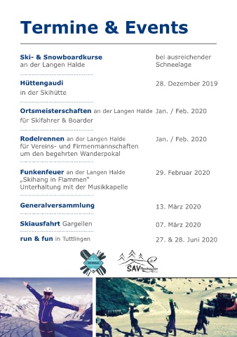 Rodelrennen an der Langen Halde 9.30 Uhr bis 13.00 Uhr 18.00 Uhr bis 22.00Uhr